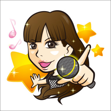 シンガーの福岡真央さんのイラストをグッズイラストを描かせていただきました。ステッカーやフライヤーに使用していただきました。