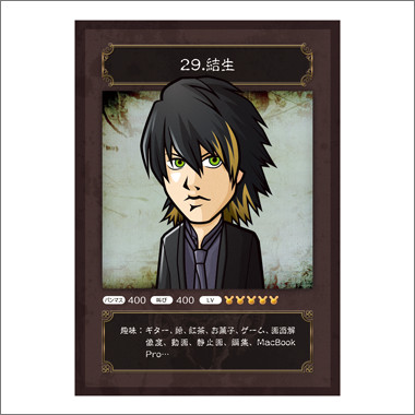 ZOMBIEツアーに続き、MERRYのトレーディングカードをデザインさせていただきました。ステータスなども設定されており、遊●王的なデザインになっています(笑) 裏面は全て集めると1枚の絵になります。