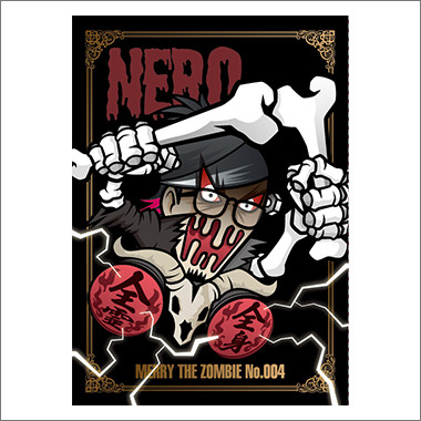 MERRYのトレーディングカードをデザインさせていただきました。 ZOMBIEツアーということで、メンバーぞれぞれをホラータッチでキャラクター化しました。 裏面は全て集めると1枚の絵になります。