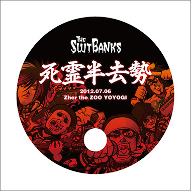 THE SLUT BANKSのうちわデザインをさせていただきました。半去勢(半アコースティック)ライブなので、イラスト全体に赤を乗せて若干控えめなデザインにしました。 ちょうどDUCKさんの誕生日翌日のライブだったので、裏面は誕生日仕様になっています。