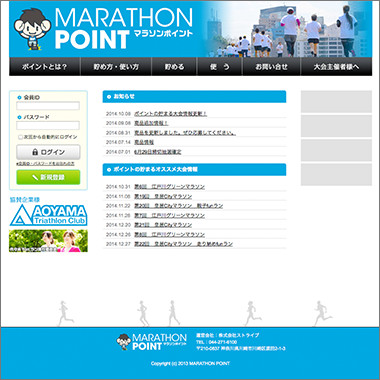 各種マラソン大会の参加者が登録しポイントを貯めるサイト「マラソンポイント」のサイトをデザインさせていただきました。