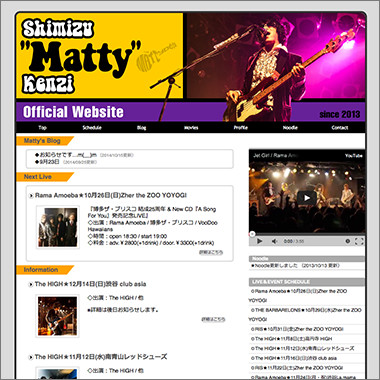 Raspberry CircusやRama Amoebaで活躍しているマティさんのWEBサイトのヘッダーデザインをさせていただきました。