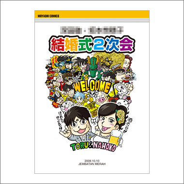 自分の結婚式の二次会用パンフレットです。ウェルカムボードにm使用したイラストを表紙に使っています。